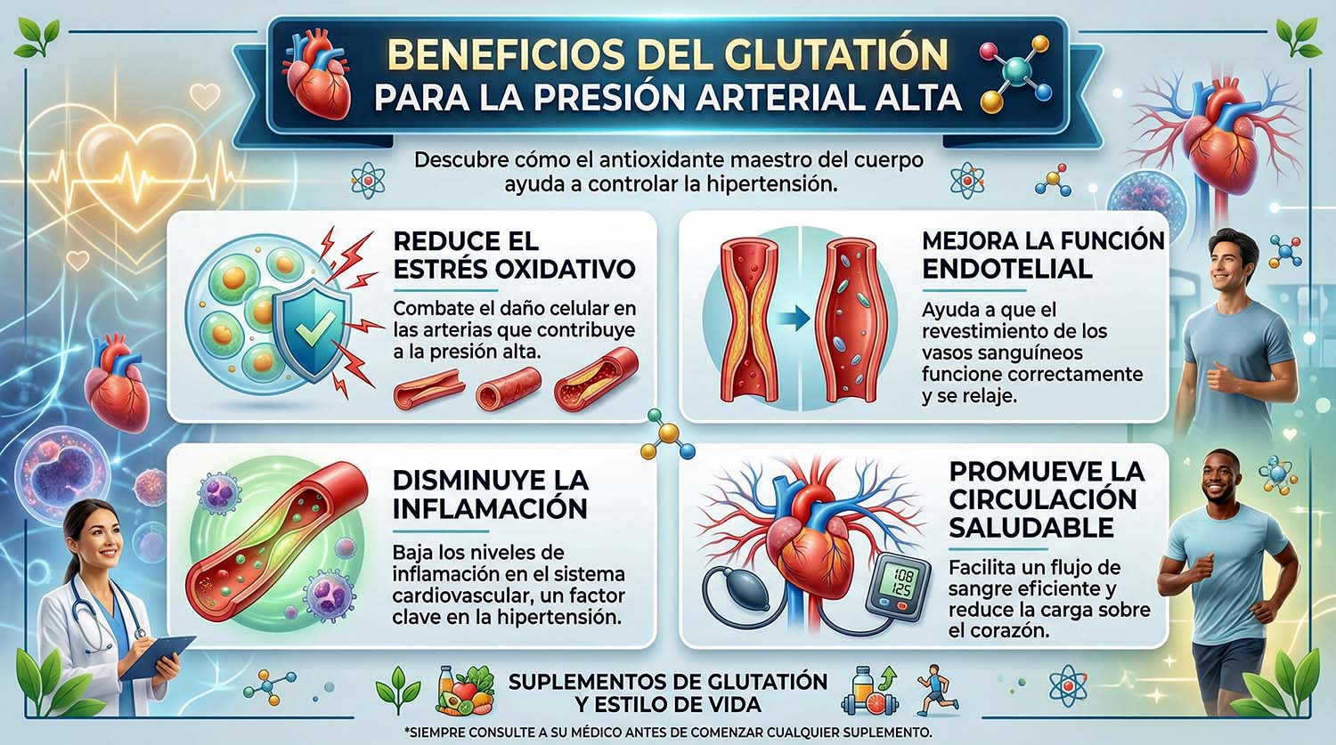 Tu presión alta es el síntoma. La deficiencia de glutatión es la causa raíz.